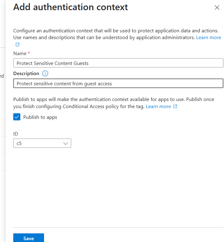 In this example we will create an authentication context to block Guest users from accessing sensitive content.