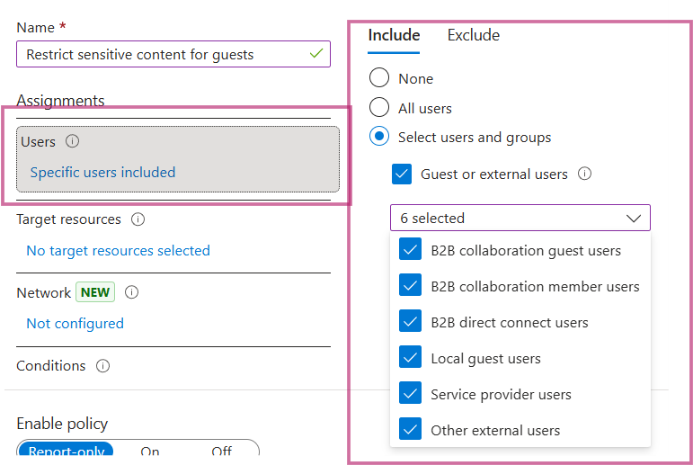 - Under Assignment, click Users > Select users and groups > Guest or external users (Image 2)
